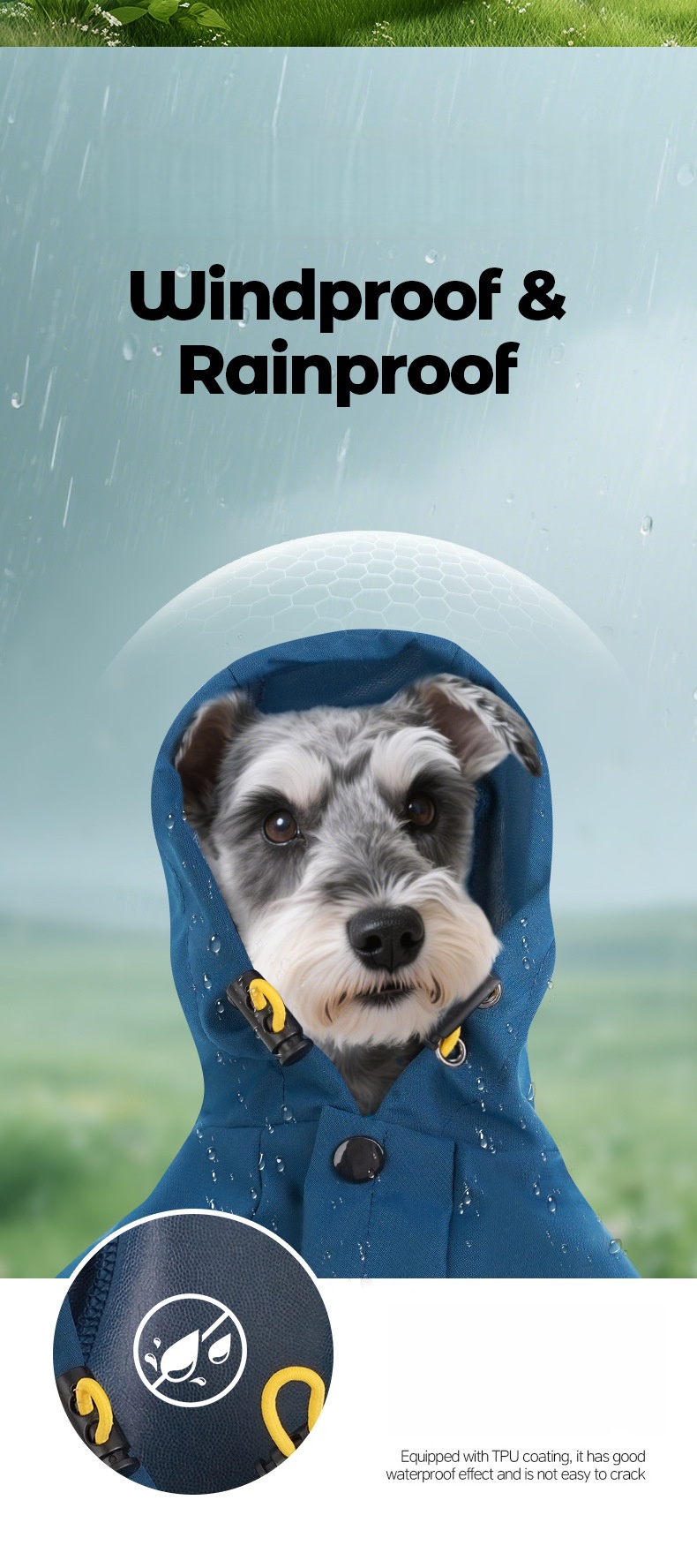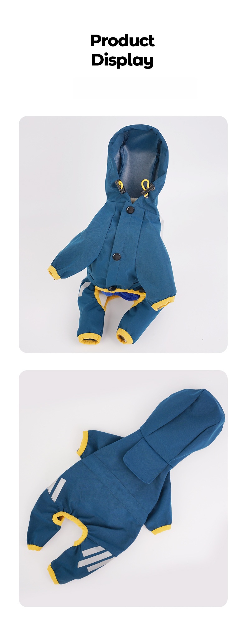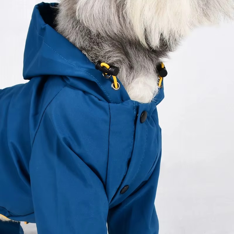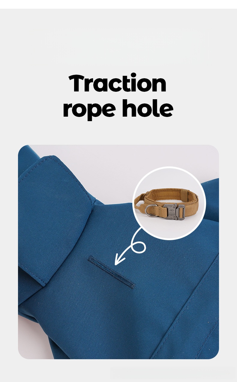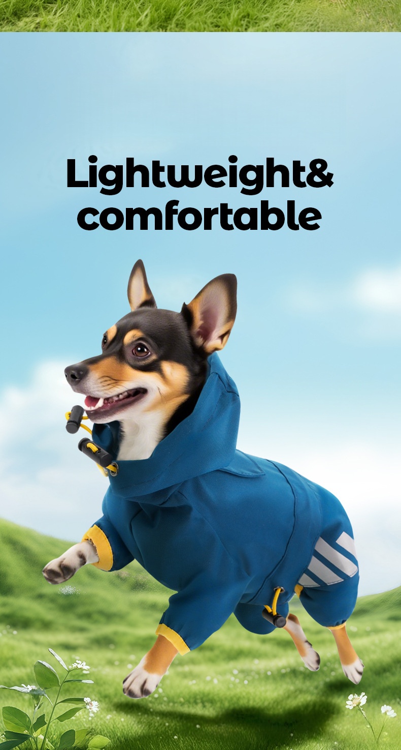 - تصميم عصري - معاطف المطر للكلاب لدينا مصممة بأربعة أرجل، تمنع تسرب الماء من جميع الاتجاهات. فتحة جر مخفية تُسهّل ربط الطوق والسلسلة. الأرجل مصممة بلف مرن، والرقبة مصممة برباط لسهولة التعديل.
