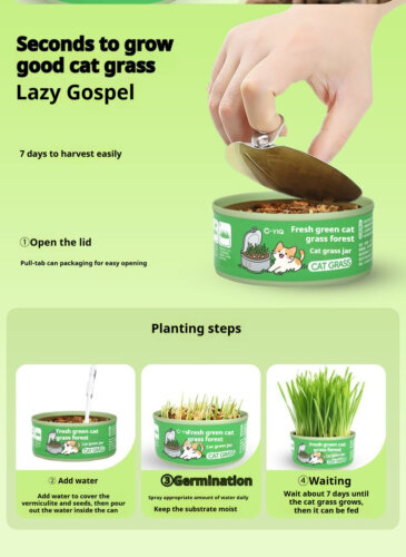 نمو سريع وسلس: عشب القطط لدينا مثالي للقطط المنزلية، إذ ينبت بسرعة في غضون 5-7 أيام فقط. يتطلب الحد الأدنى من الري، وينمو في مختلف الظروف الداخلية.