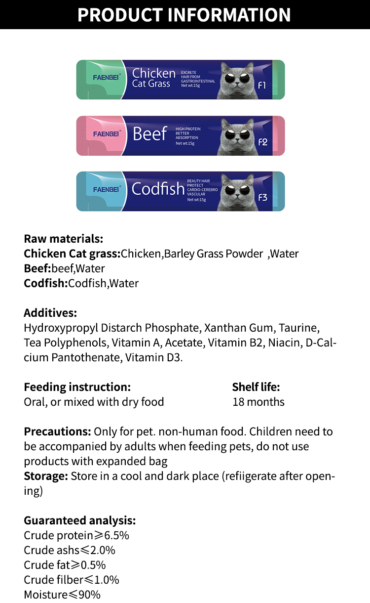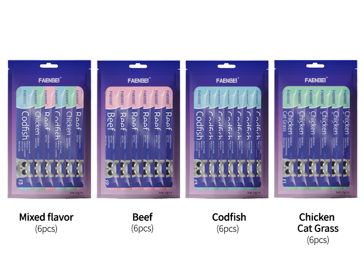 Alimento para mascotas personalizado de fábrica, 15 g de palitos para gatos, snack húmedo, golosinas cremosas, alto contenido proteico y bajo en grasas.