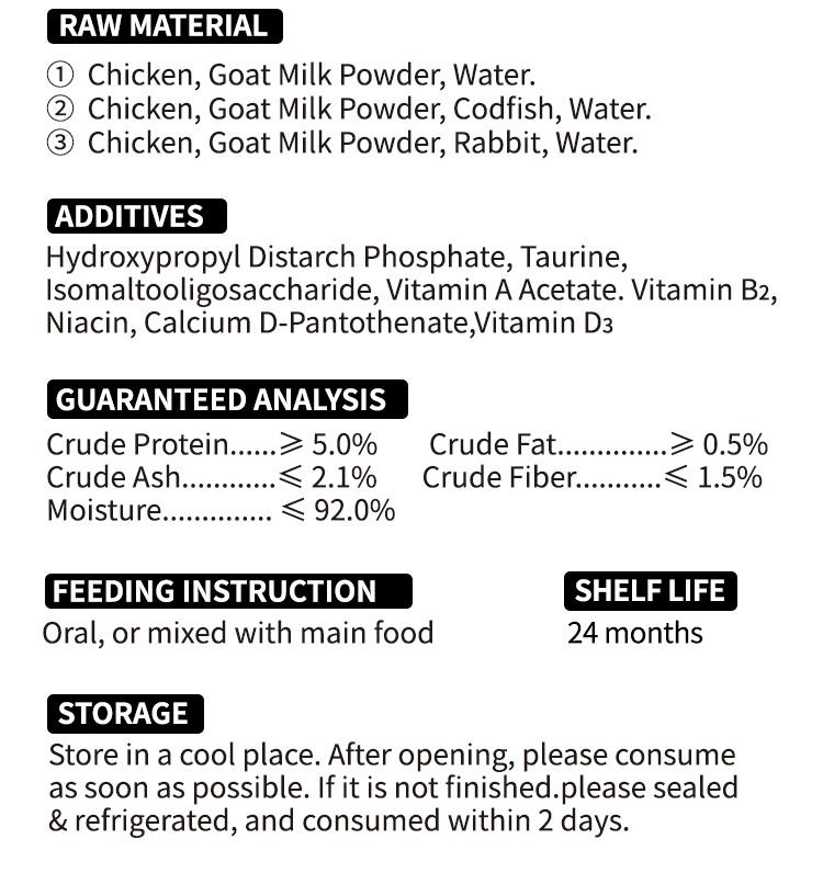 16 de julio de 2025Snacks para mascotas, paquetes de leche de cabra, snacks para gatos, paquetes de comida húmeda, leche de cabra 85 g