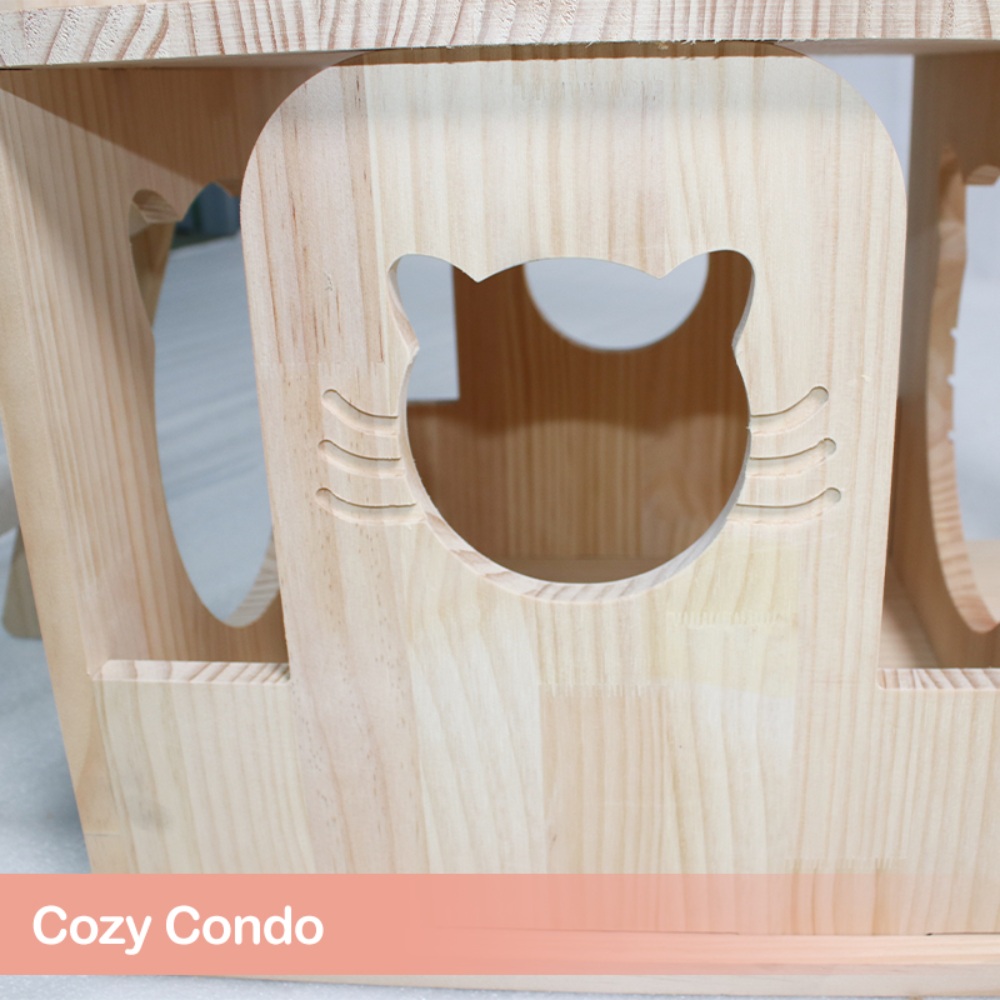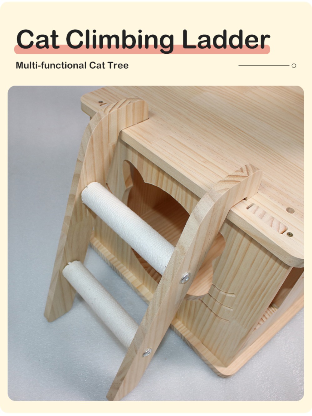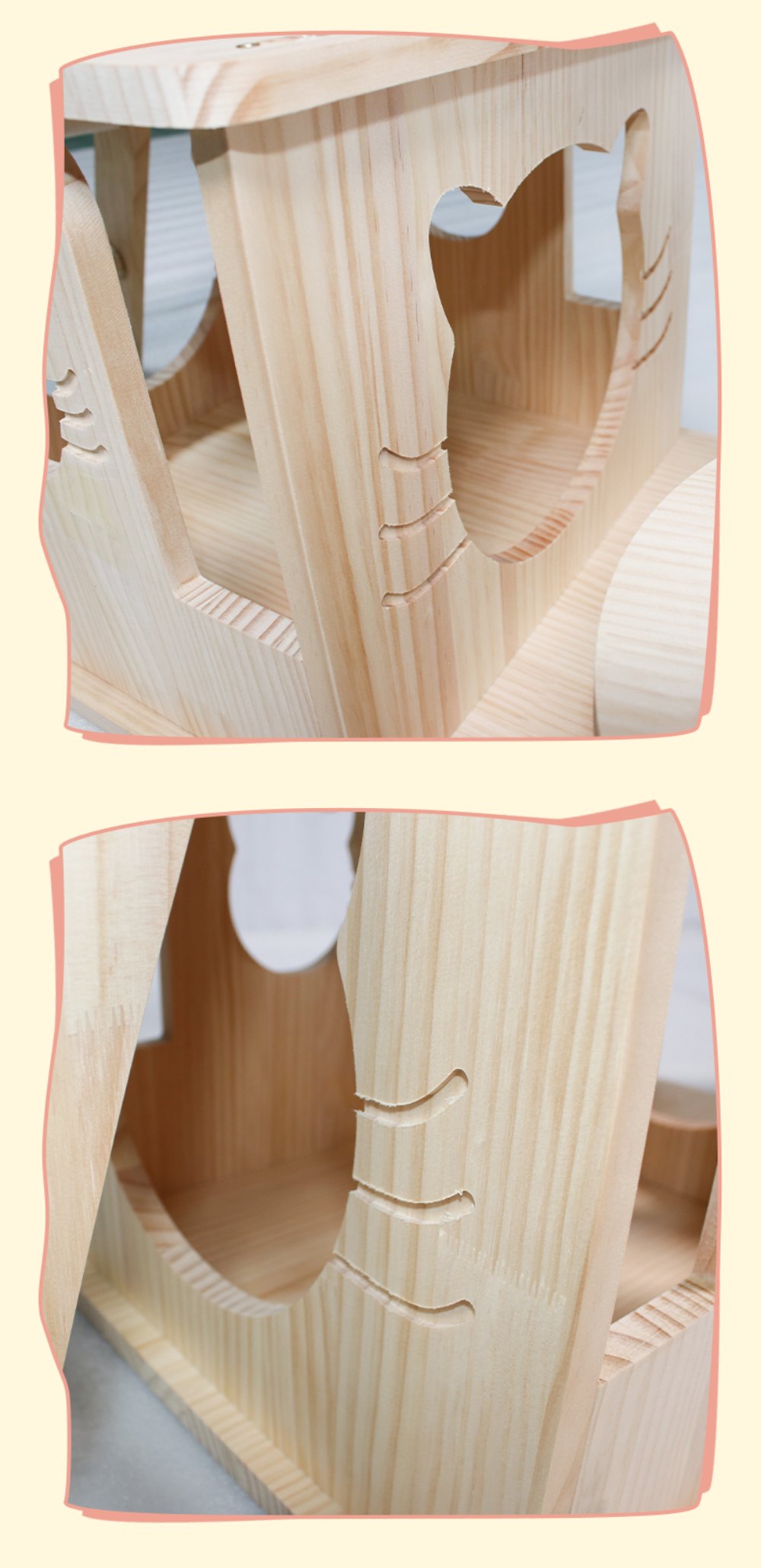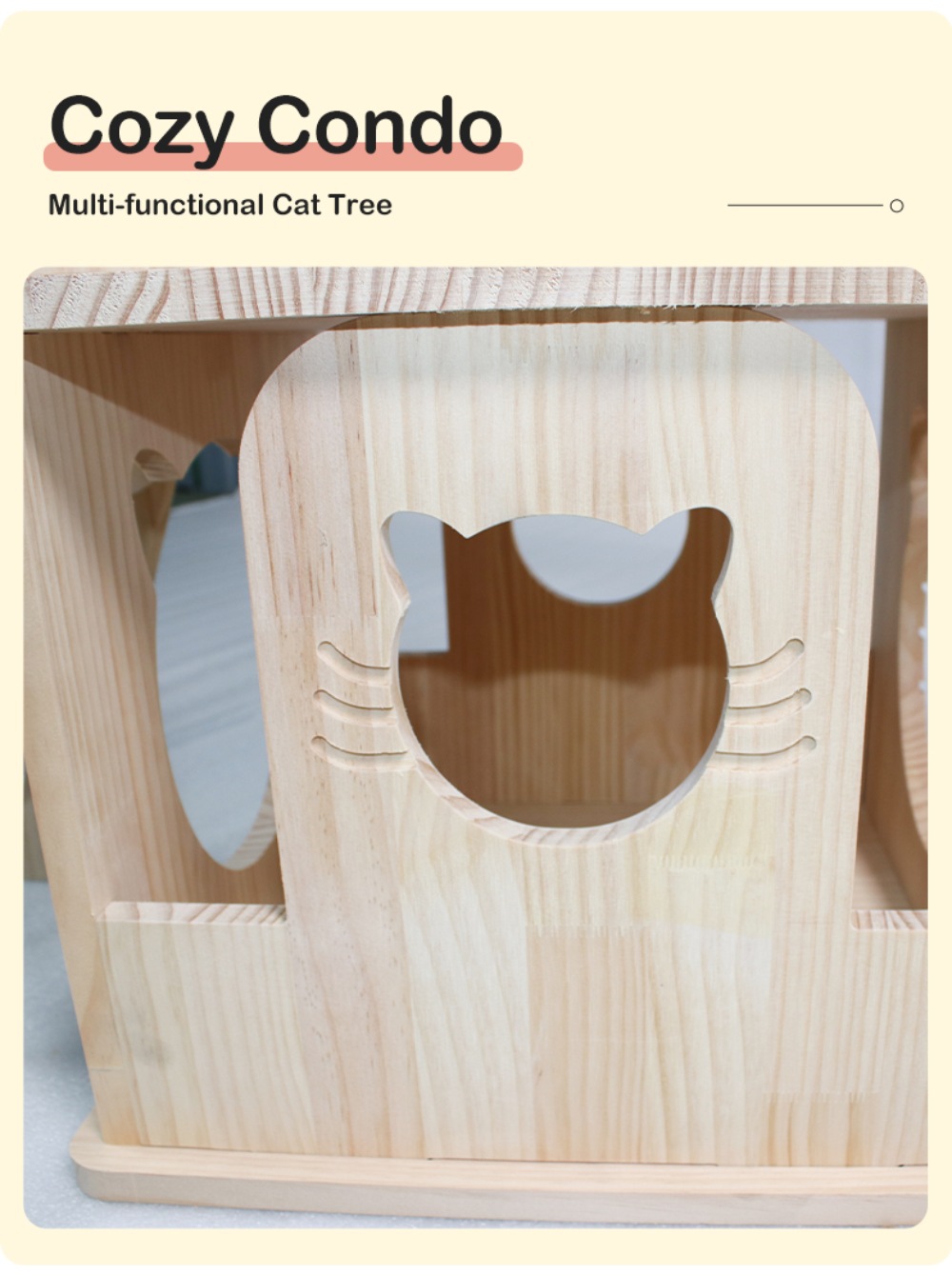 Madeira espessa, durável e fácil de limpar: Ao contrário dos materiais de pelúcia tradicionais, esta moderna árvore para gatos é feita de madeira espessa e de alta densidade, garantindo estabilidade e facilidade de manutenção diária. A superfície lisa pode ser limpa com um pano para remover pelos, sujeira ou manchas de água. Este design é feito sob medida para donos de gatos que buscam móveis com estética moderna sem abrir mão da funcionalidade e do conforto.