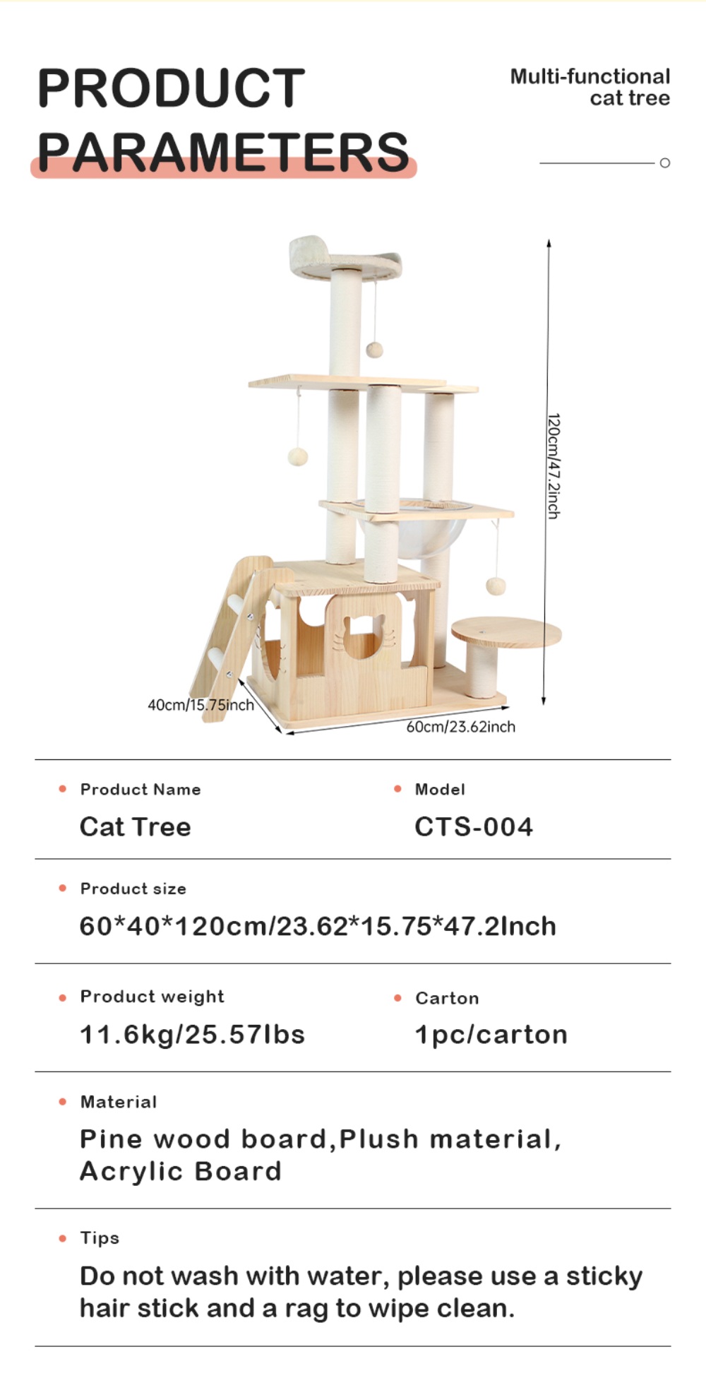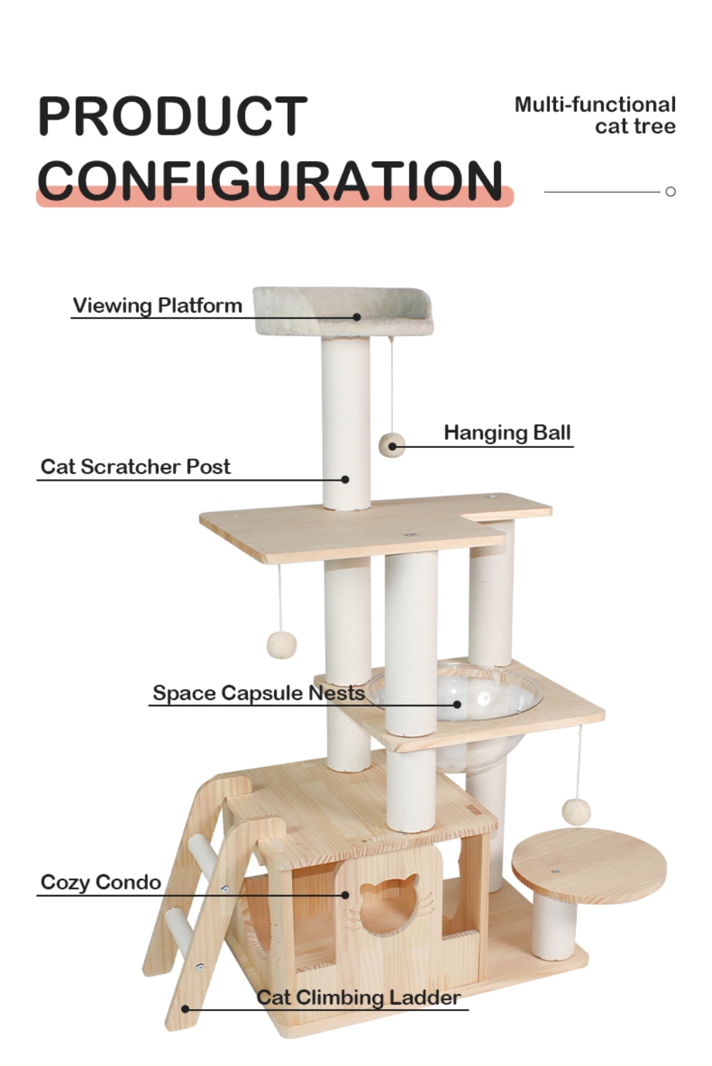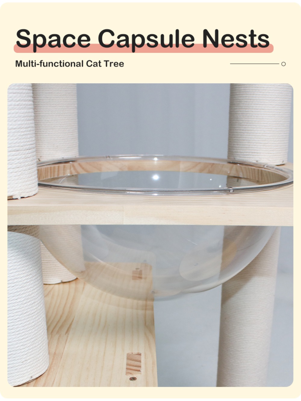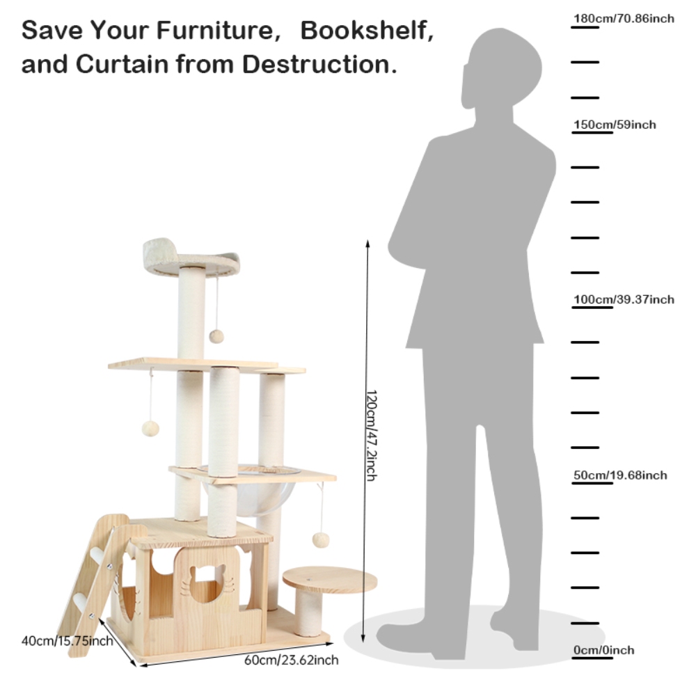 Madeira espessa, durável e fácil de limpar: Ao contrário dos materiais de pelúcia tradicionais, esta moderna árvore para gatos é feita de madeira espessa e de alta densidade, garantindo estabilidade e facilidade de manutenção diária. A superfície lisa pode ser limpa com um pano para remover pelos, sujeira ou manchas de água. Este design é feito sob medida para donos de gatos que buscam móveis com estética moderna sem abrir mão da funcionalidade e do conforto.