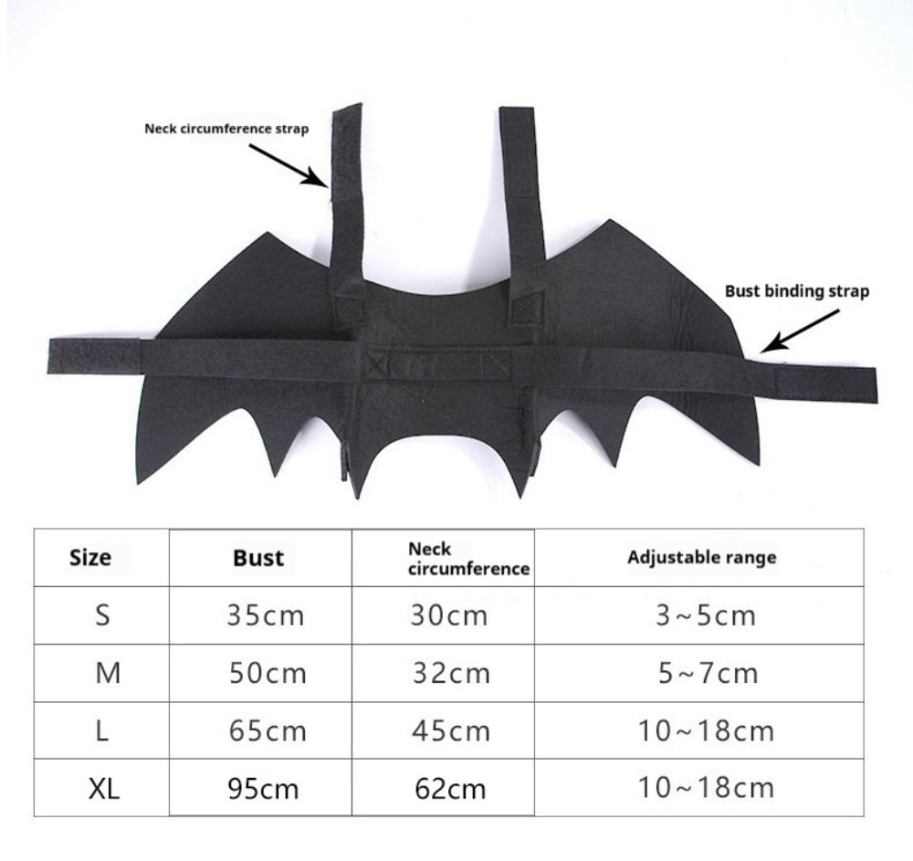 Este acessório de asa de morcego para animais de estimação apresenta um design realista, exalando o mistério e a fantasia do Halloween. Ao usá-lo, seu animal de estimação se transforma instantaneamente em um pequeno morcego, adicionando diversão e alegria à festa.