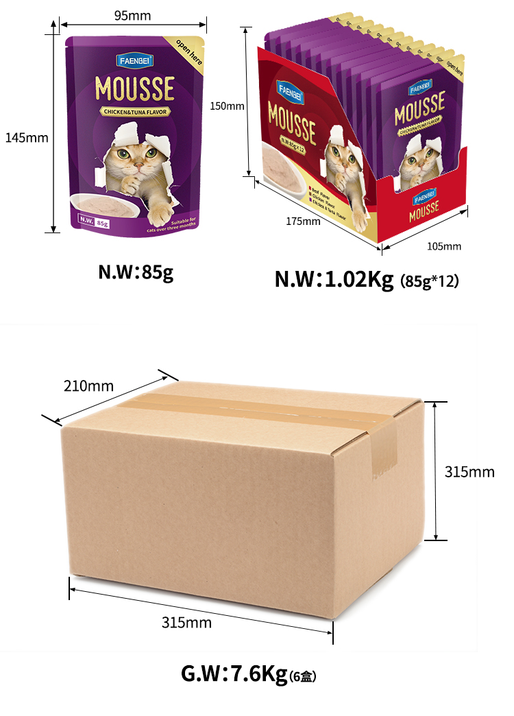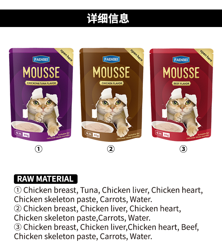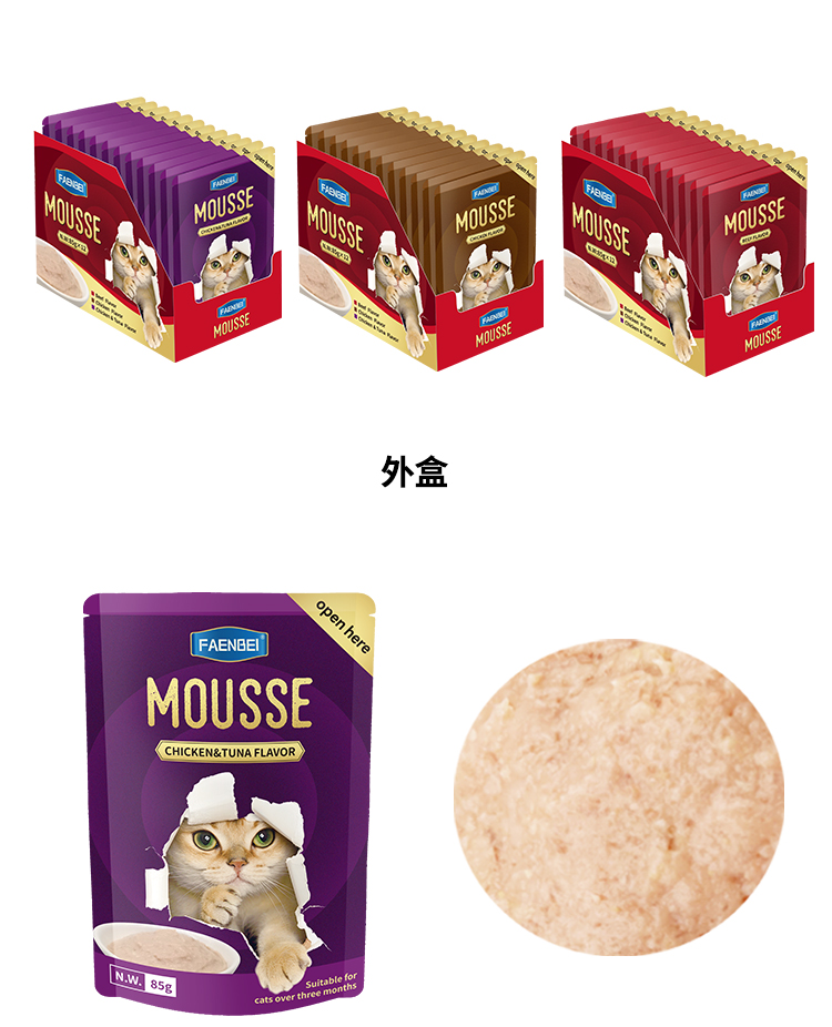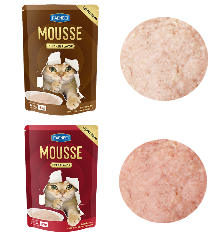 17 de julho de 2025Petiscos para animais de estimação, atacado, mousse, comida úmida, pacote a granel, 2025, novo pacote, frango, atum, carne bovina, todas as fases da vida, 85g, para cães e gatos, OEM/ODM