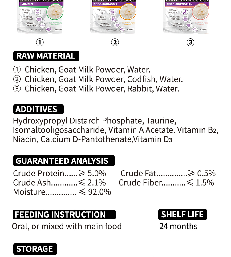 16 de julho de 2025Pet Snacks para Gatos 80g Pet Snacks 3 Sabores Ração Úmida para Gatos Frango Coelho Bacalhau Embalagem Antiga