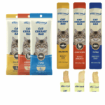 Petiscos para animais de estimação disponíveis para gatos, comida úmida, salgadinhos de frango, salmão, atum, sabores cremosos para gatos, 15g