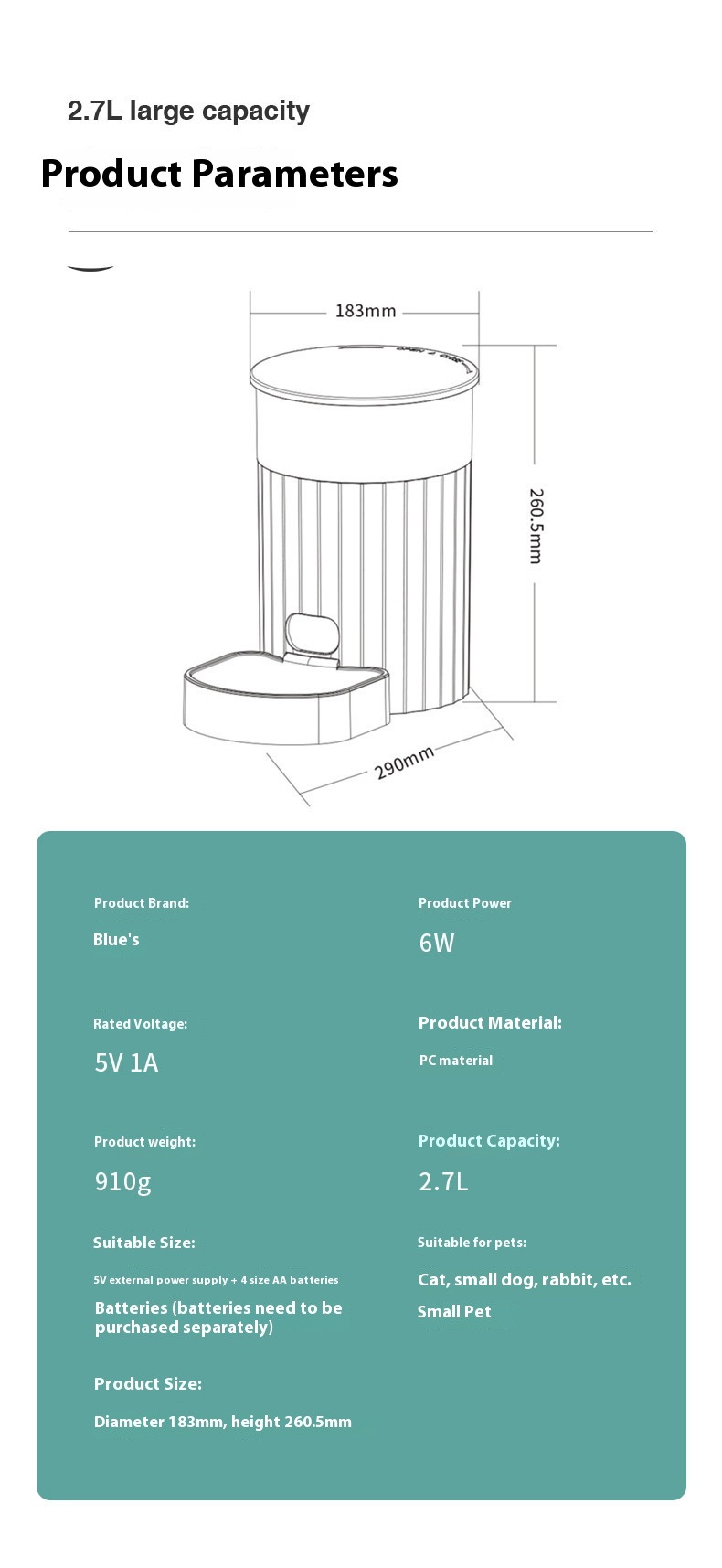 Аккумуляторная кормушка – Автоматическая Wi-Fi кормушка для кошек питается от встроенного литиевого аккумулятора. Полная зарядка занимает 8 часов, а срок службы аккумулятора составляет до 30 дней. Она не только экономит расходы на замену батареек, но и более экологична и универсальна: больше нет ограничений на розетки, что даёт вам больше свободы в выборе места установки.