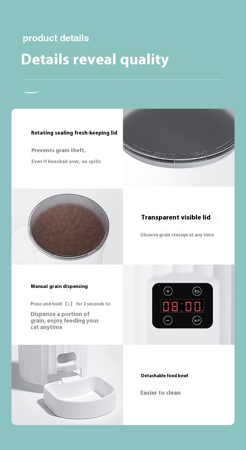 Попрощайтесь с перееданием! Автоматическая кормушка для животных с приложением оснащена крышкой, которая надежно закрывается одним щелчком. Прожорливым питомцам придётся запастись терпением!