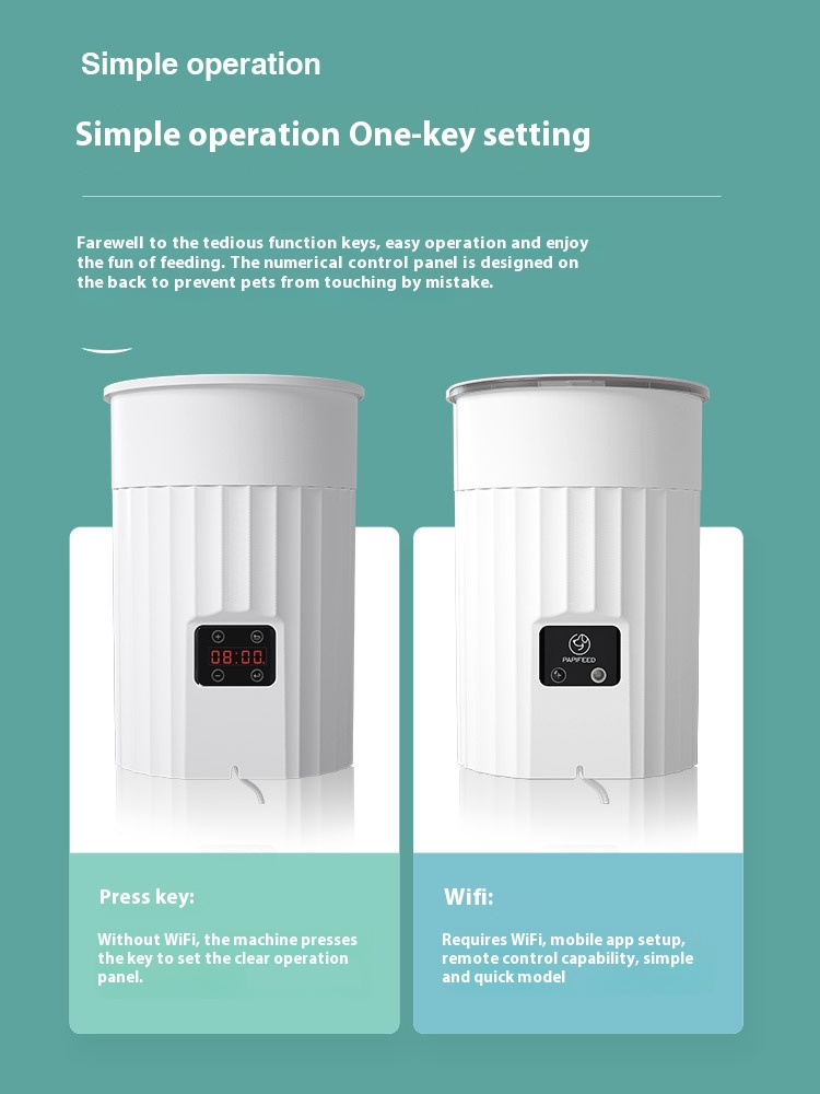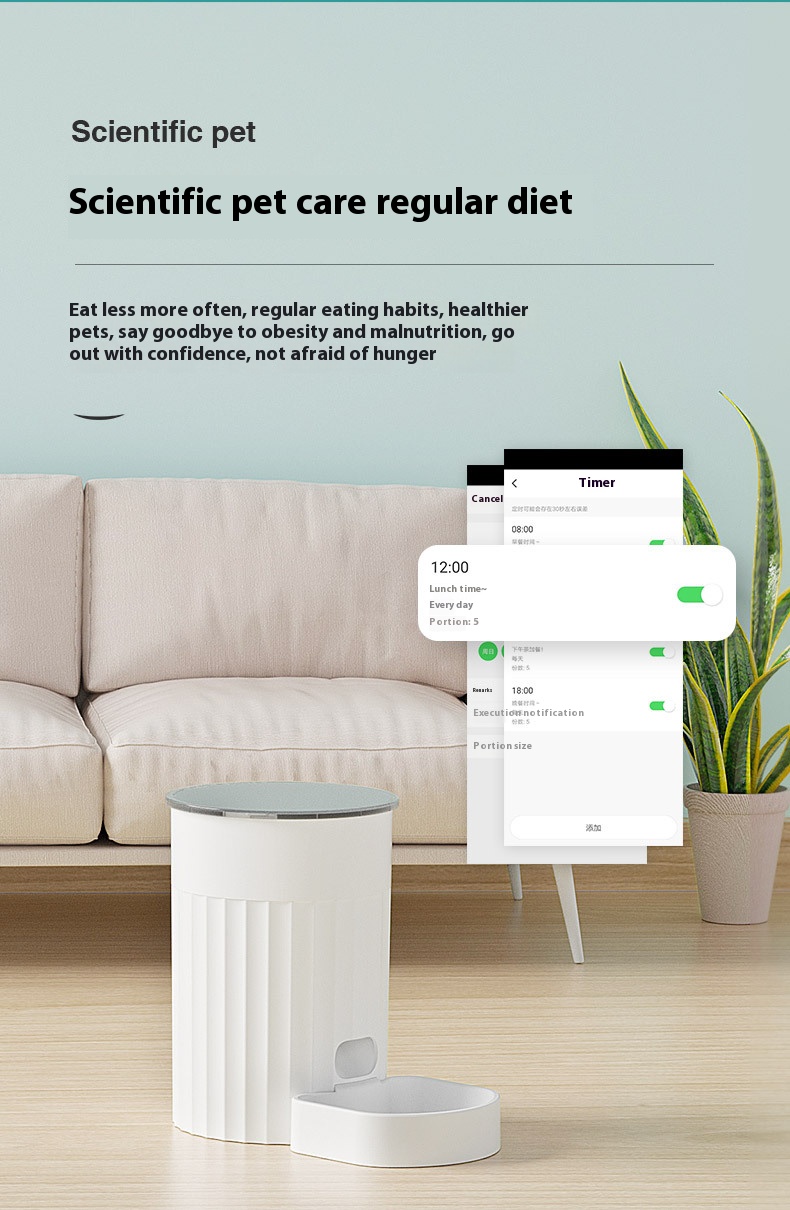 Интеллектуальное кормление. После подключения автоматической кормушки для кошек PETLIBRO Air к сети WiFi (поддерживает только сети WiFi 2,4 ГГц) вы можете легко устанавливать или изменять индивидуальный график кормления удаленно с помощью мобильного приложения «PETLIBRO», что избавит вас от утомительного нажатия кнопок и обеспечит более комфортную жизнь вам и вашему питомцу.