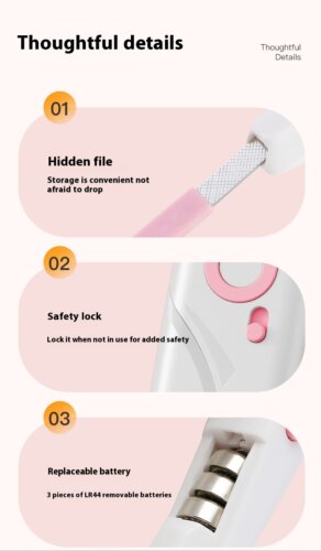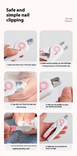 Яркий светодиод: наши кусачки для когтей домашних животных оснащены сверхярким светодиодом, который подсвечивает кровеносные сосуды во время стрижки когтей вашего питомца. Вам больше не придётся беспокоиться о том, что вы перережете ногти и у вашего питомца пойдёт кровь.