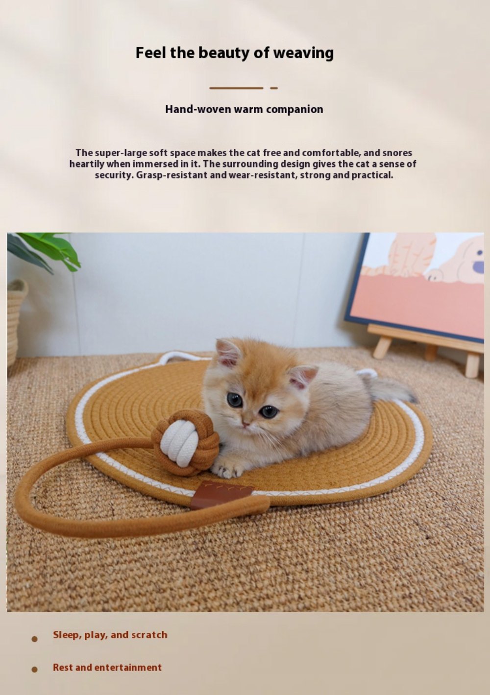 Коврик для кошек ручной работы – можно стирать в стиральной машине, устойчив к царапинам и прослужит все сезоны