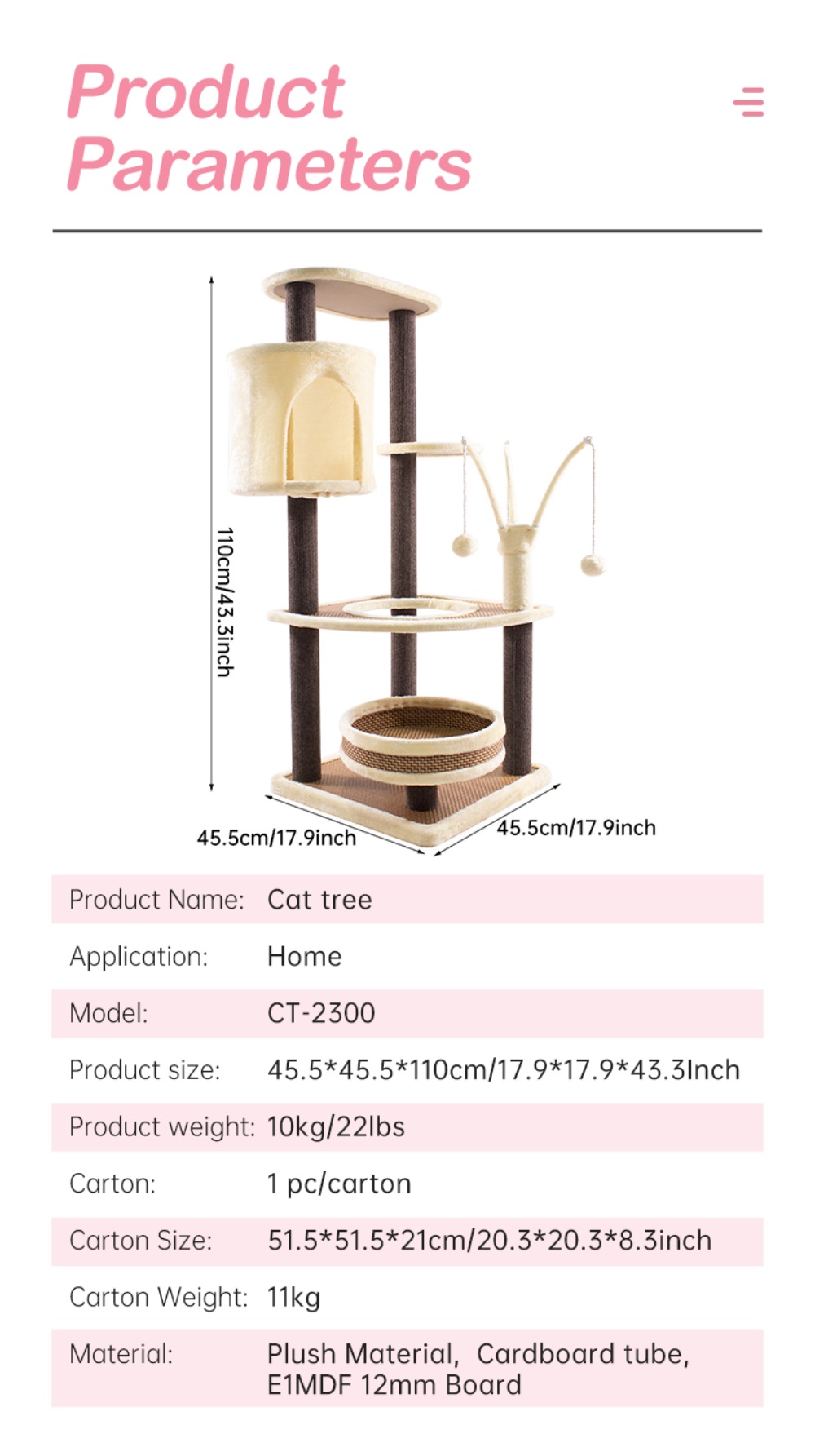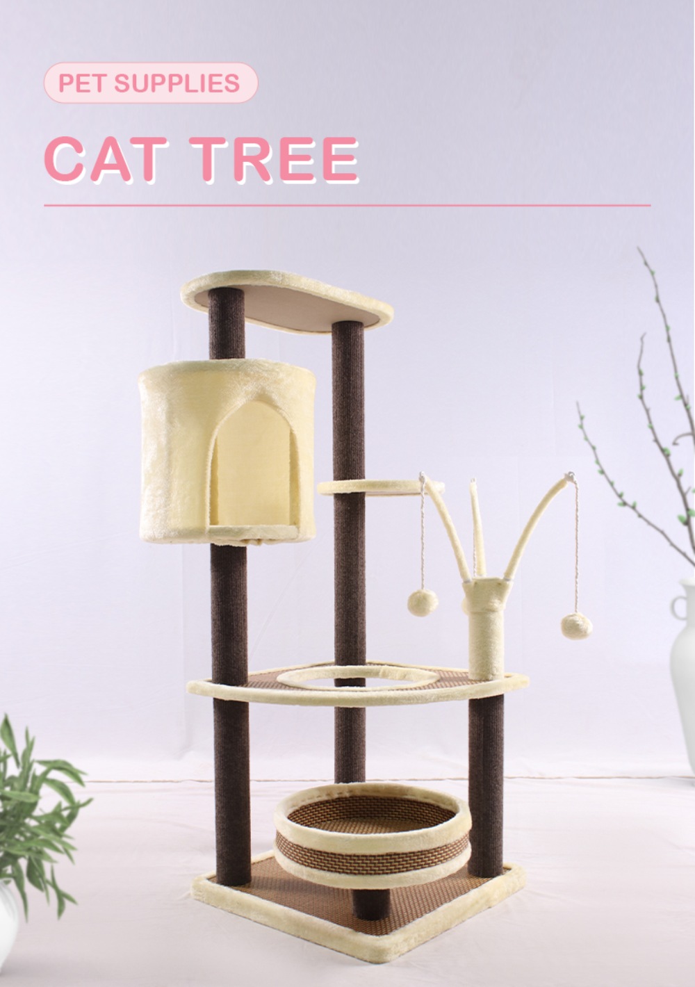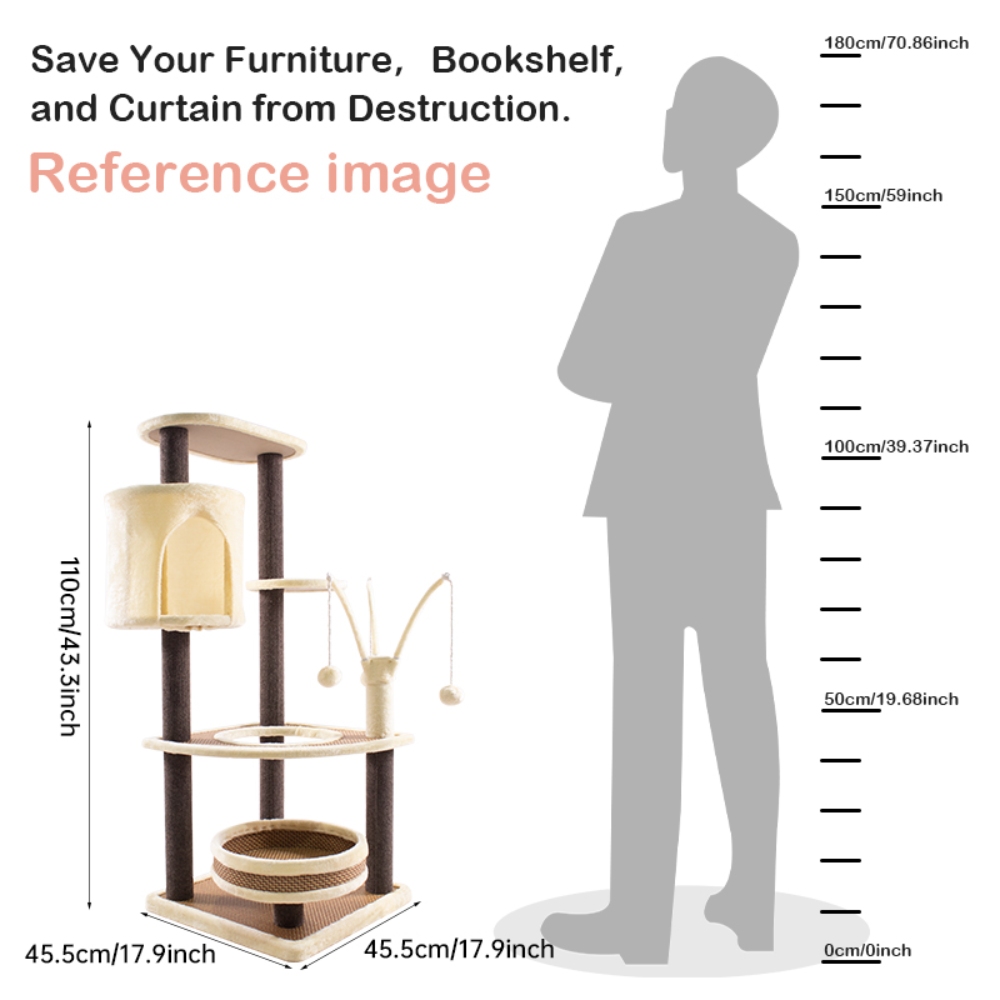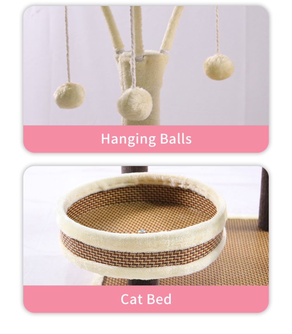 Прочная конструкция: изготовленная из прочных столбов, обмотанных сизалем, и мягких лежанок, эта елка обеспечивает безопасную и комфортную среду для кошачьего веселья и отдыха.