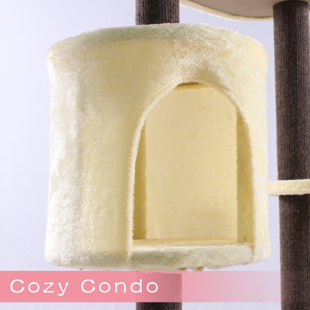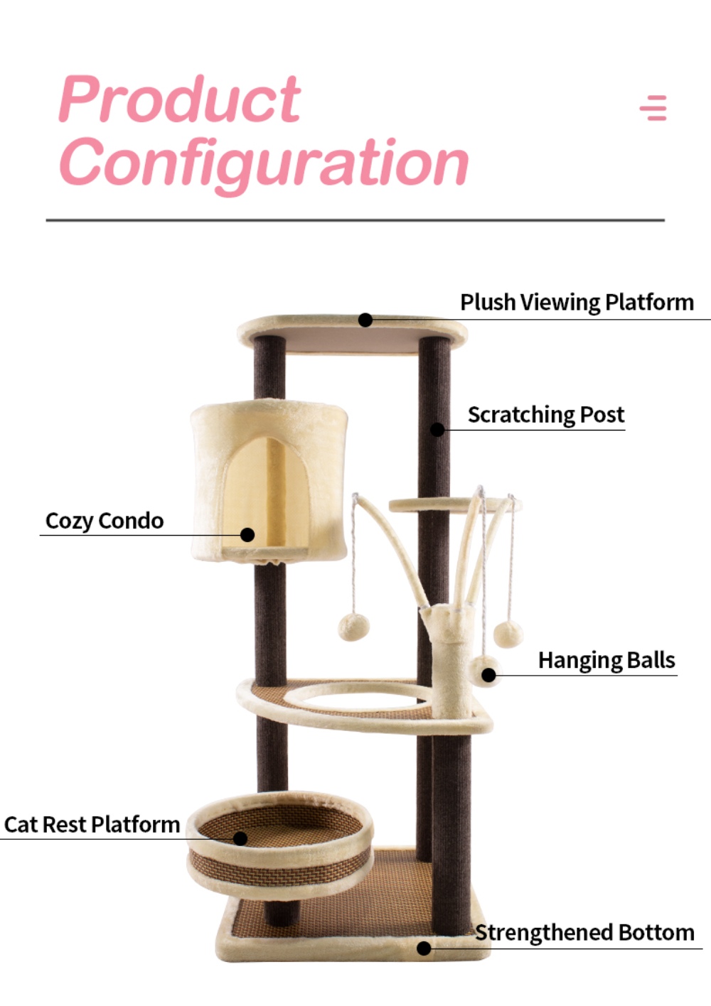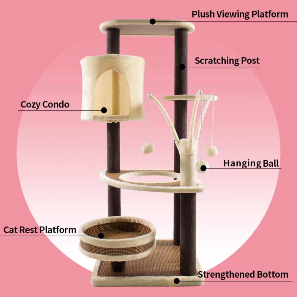Многоуровневая конструкция: это кошачье дерево оснащено несколькими платформами и насестами на разной высоте, что обеспечивает достаточно места для того, чтобы несколько кошек могли лазить, точить когти и отдыхать.