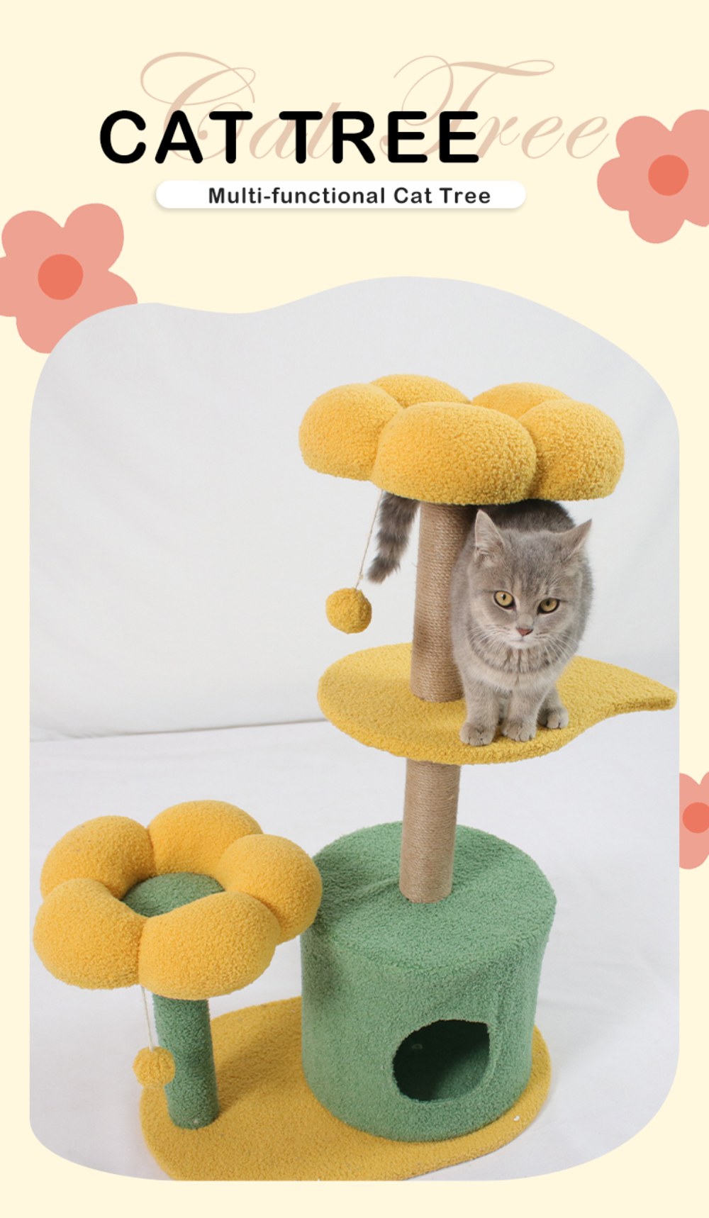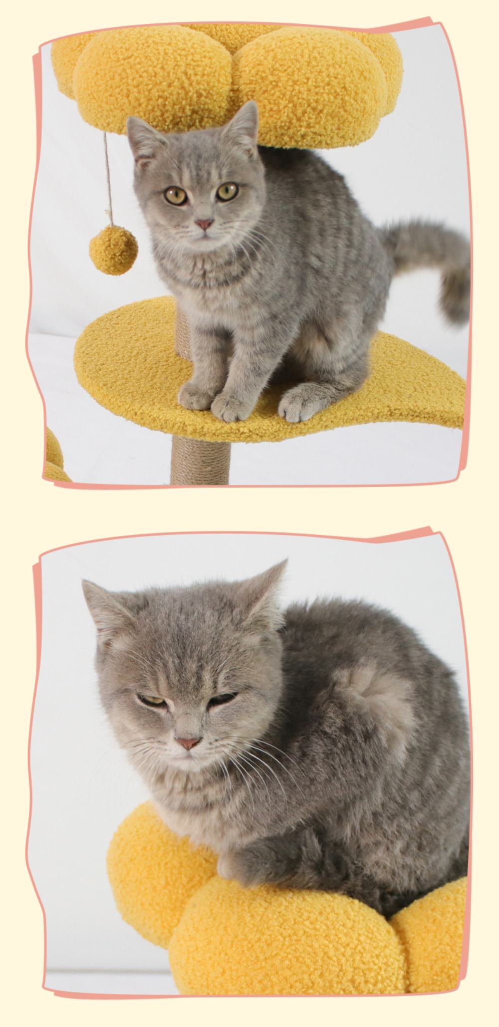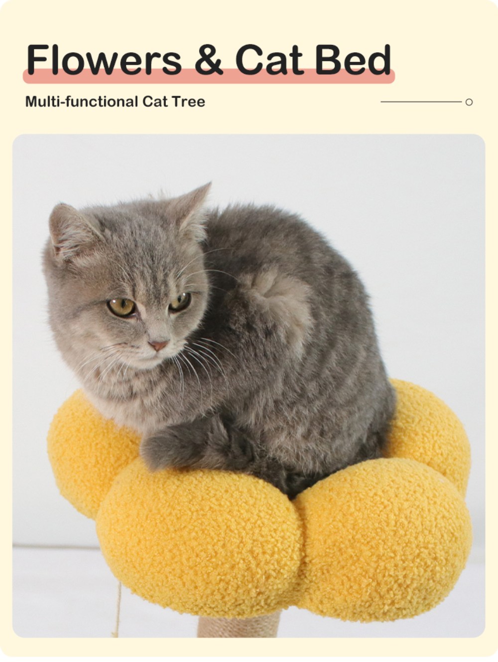 【Unique & Practical】This cat tree flower features two medium-sized flower cat beds.The cute cat tower provides an ideal space for your cat to play, scratch, and rest, while also adding a beautiful piece of art to your home
