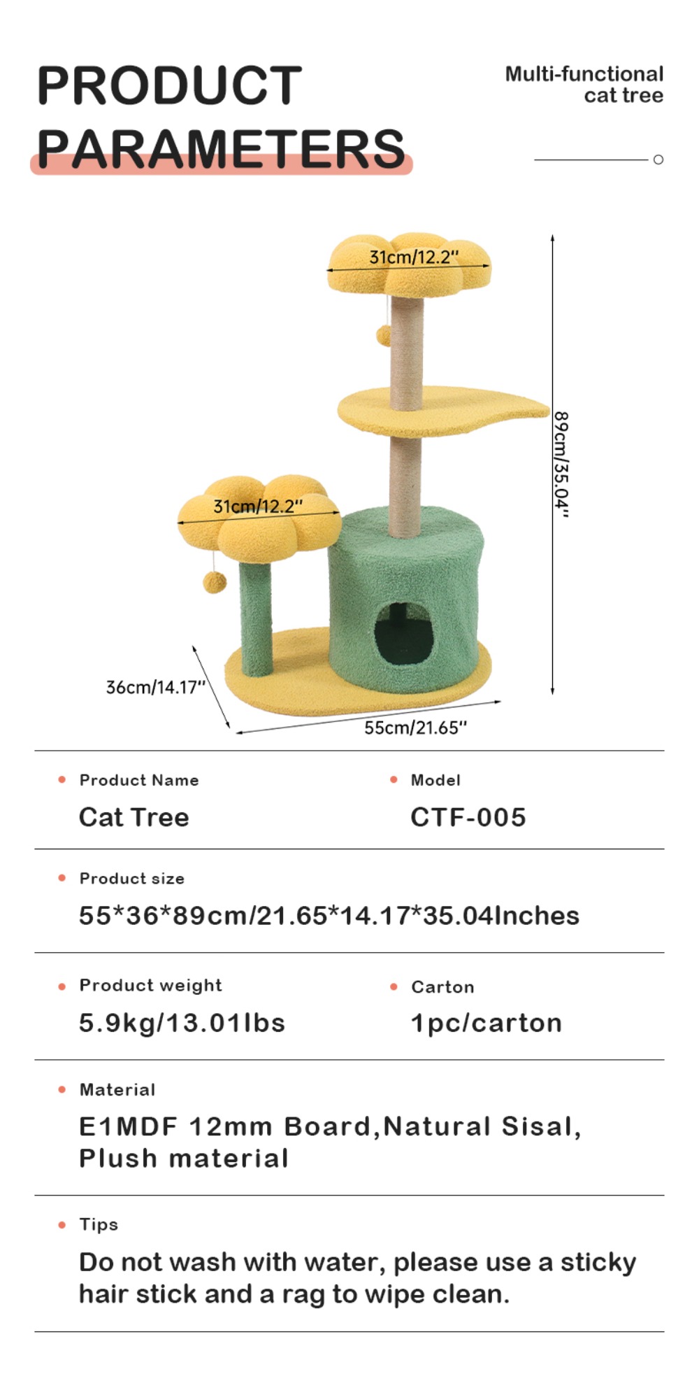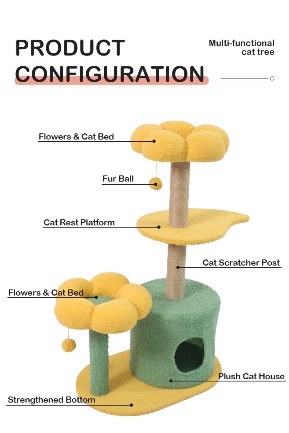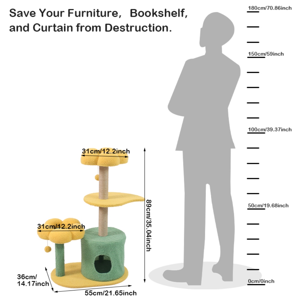 【Unique & Practical】This cat tree flower features two medium-sized flower cat beds.The cute cat tower provides an ideal space for your cat to play, scratch, and rest, while also adding a beautiful piece of art to your home