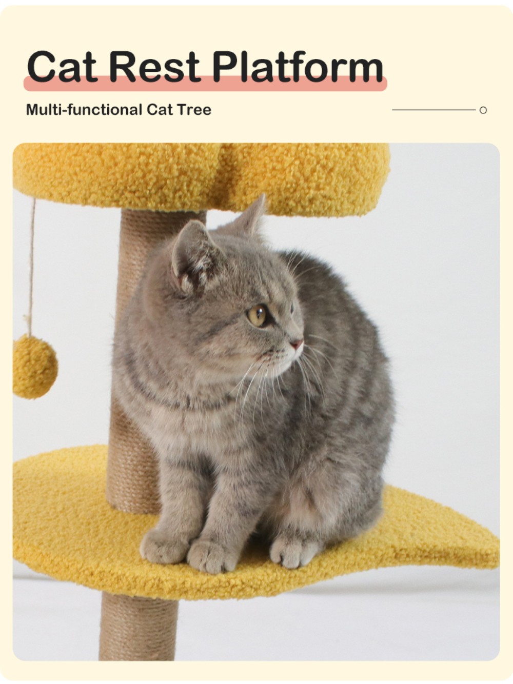 【Versatile Activity Center】This small cat tree has a cozy cat condo, two scratch posts wrapped entirely in natural sisal rope, and two adorable fluffy cat toys hanging from it. The small cat trees for indoor cats offers you peace of mind by preventing furniture damage when you’re away